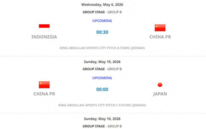 根据亚足联官网显示,中国队3场小组赛均在0点和0点以后开始,第1场:北京时间5月6日0点30分,中国队首战印尼队;第2场:北京时间5月10日0点,中国队次战日本队;第3场:北京时间5月13日0点,中国队最后对阵卡塔尔队。这个比赛时间也许对于电视观众体验不好,但是对于球员来说,其实比赛时间不错,首先避开了当地白天的炎热天气,而且第1场和第2场之间有4天的调整时间,中国队完全可以在第1场全主力出击,先战胜印尼队,获得3分,奠定坚实的出线基础,然后经过充足的休息后,再在第2场与日本队争夺小组第1,只要2连胜,中国队就能提前出线。